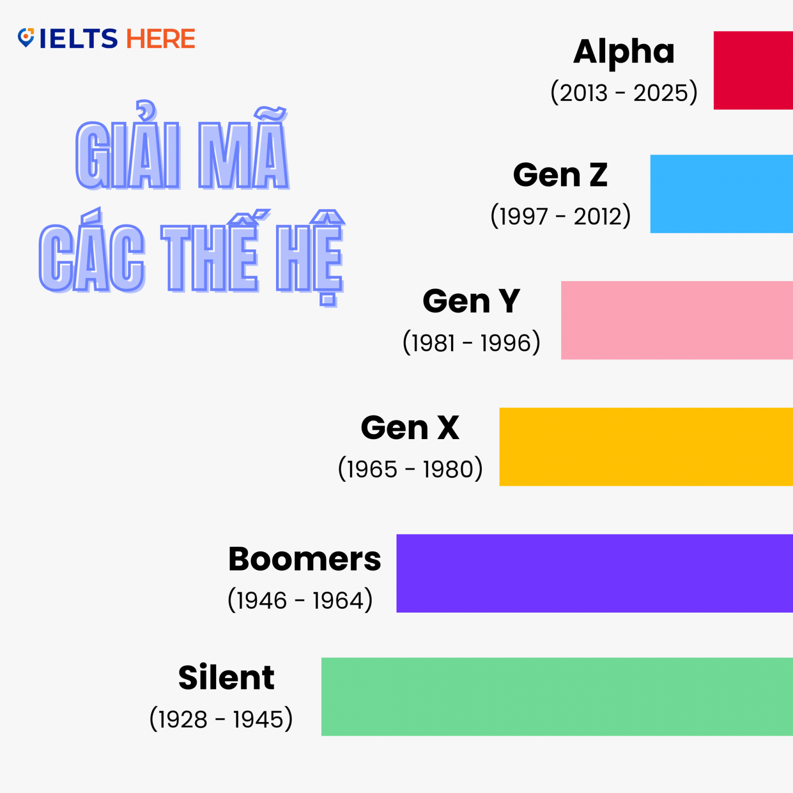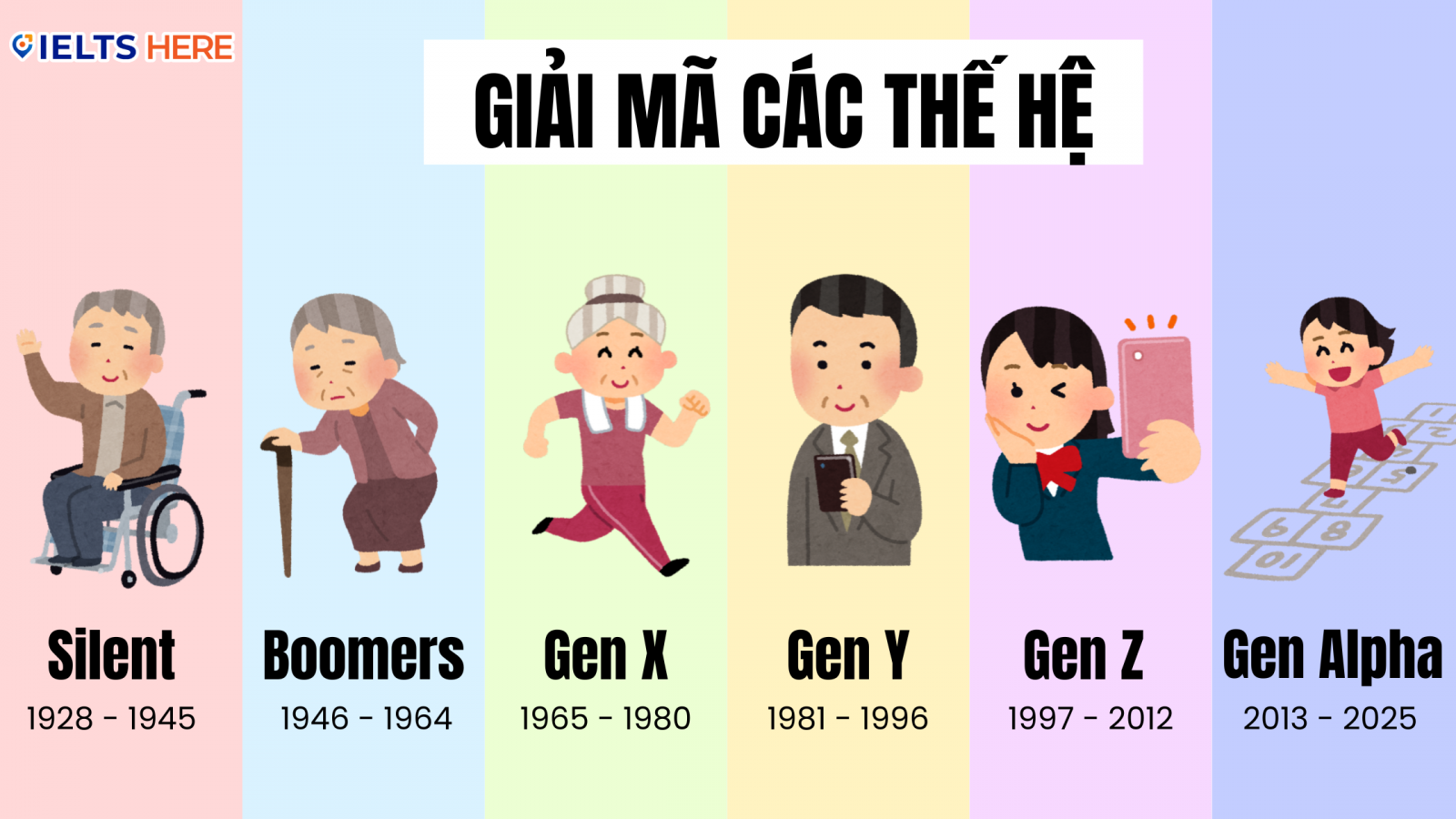 Chắc hẳn không ít người trong chúng ta từng nghe đến những khái niệm như Gen X, Y, Z hay Alpha. Nhưng liệu bạn có thực sự hiểu khái niệm này là gì? Hãy cùng IELTS HERE tìm hiểu ngay nhé.